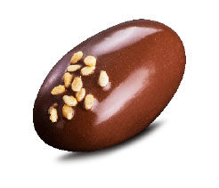 Crispy hazelnut and almond praline covered in roasted almonds and coated in milk chocolate.